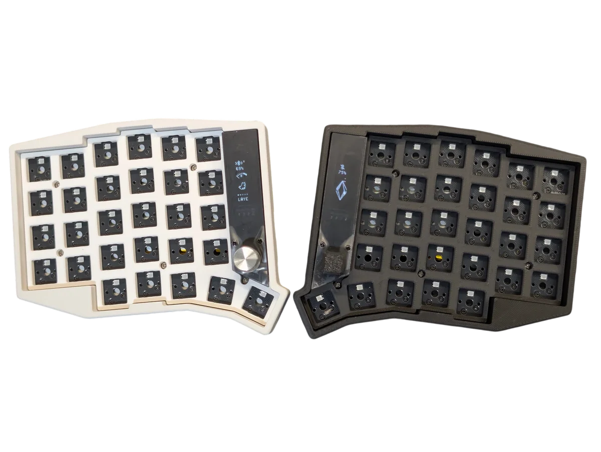 Teclado split ergonómico tipo Sofle de 58 teclas, diseñado para máxima personalización y eficiencia. Basado en firmware ZMK con conectividad inalámbrica, incorpora funciones avanzadas como encoder (knob), joystick y opción de pantalla (LCD/OLED) para control visual. Su diseño dividido real mejora la ergonomía y permite una experiencia completamente adaptable al usuario.