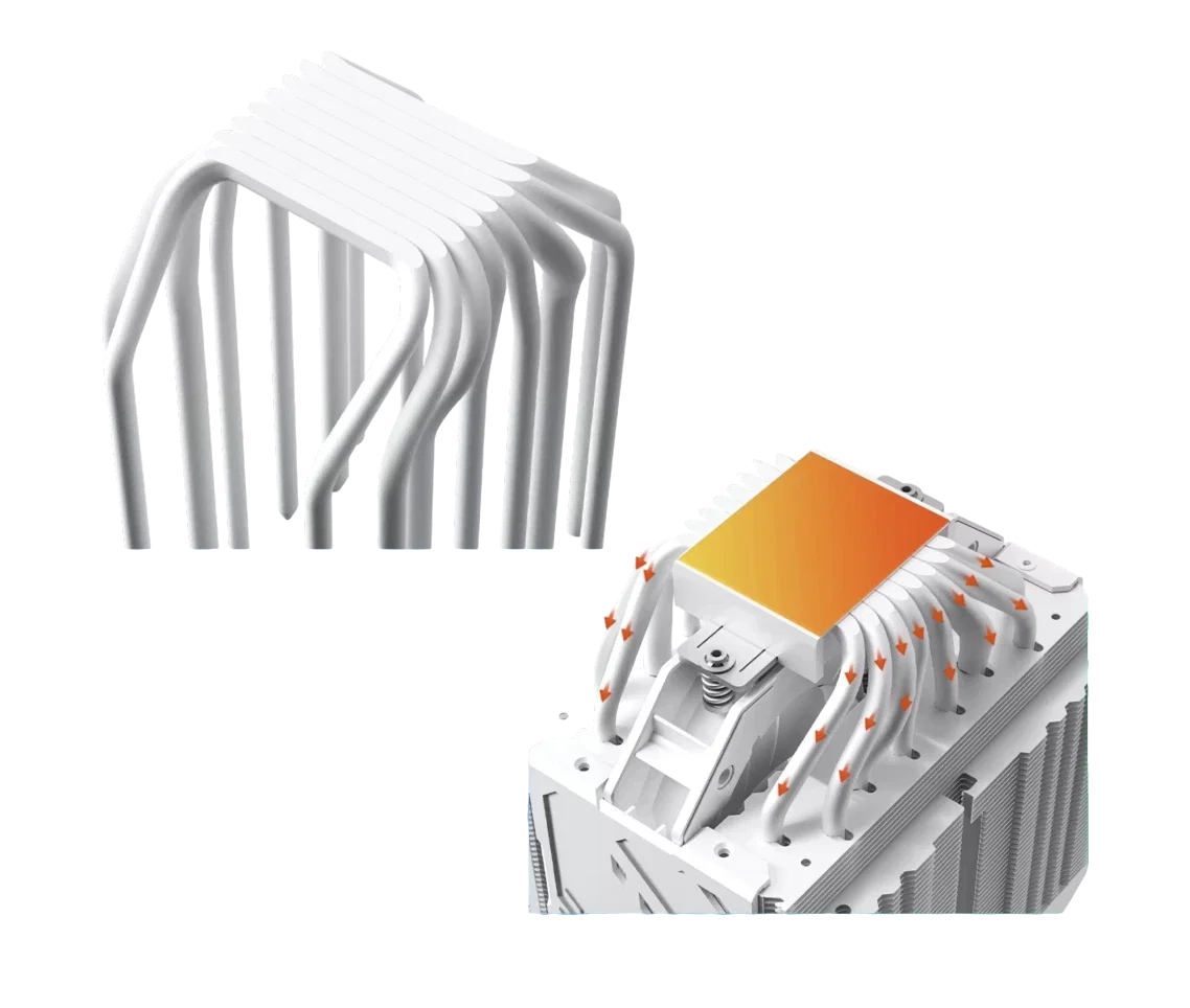 El Valkyrie DX140 es un cooler de alto rendimiento diseñado para plataformas Intel, combinando potencia térmica extrema con estética premium. Su diseño de doble torre, junto a 8 heatpipes de alto desempeño, permite disipar grandes cargas térmicas sin comprometer el ruido.