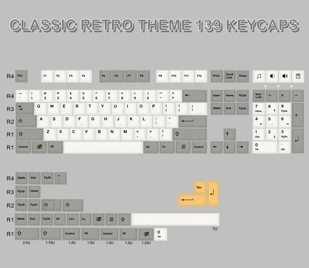 Cantidad de keycaps: 139 + 4(las flechas también están en amarillo)