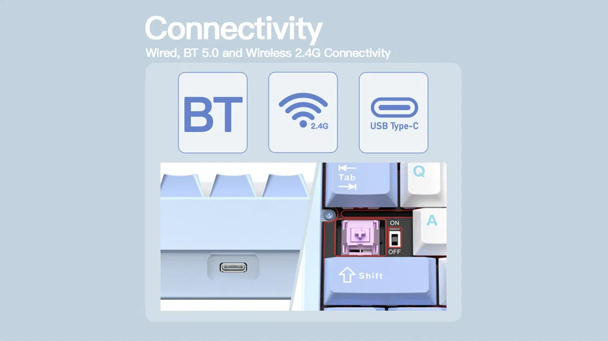 Conexion: Type - C, Bluetooth, 2.4Ghz