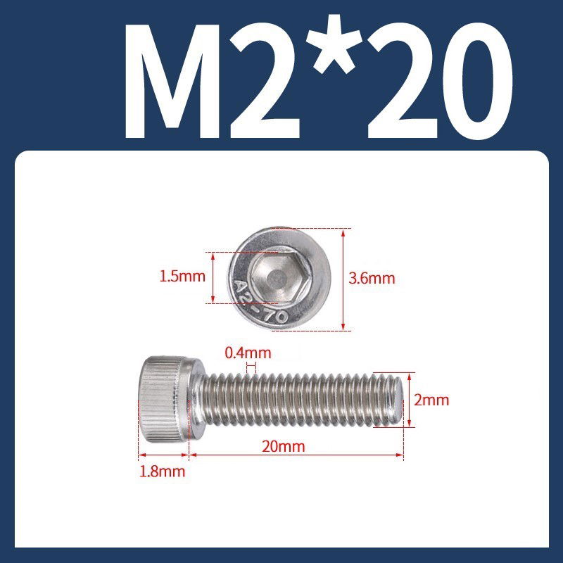 Tornillo Allen M2x20 M2*20 inoxidable 304