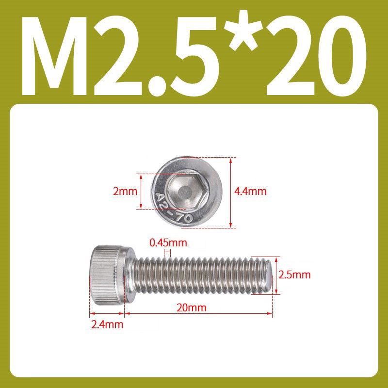 Tornillo Allen M2.5x20 M2.5*20 inoxidable 304