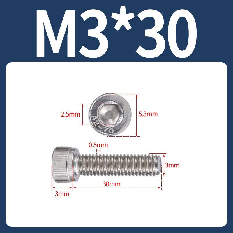 Tornillo Allen M3x30 M3*30 inoxidable 304