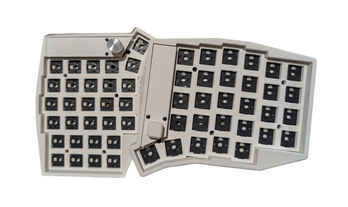 58 Keys Standard con knob y joystick Conexion: Type - C, Bluetooth, 2.4 Ghz (dongle no incluido) Batería: 2000mah RGB: si PCB: north facing Incluye keycaps: NO Case impreso. Github: https://github.com/a741725193/zmk-corne_no_display Solo soporta ZMK, no soporta QMK. Con una carga de 2000mAh tiene una duración de 4 a 8 meses si esta apagada la retroiluminación.