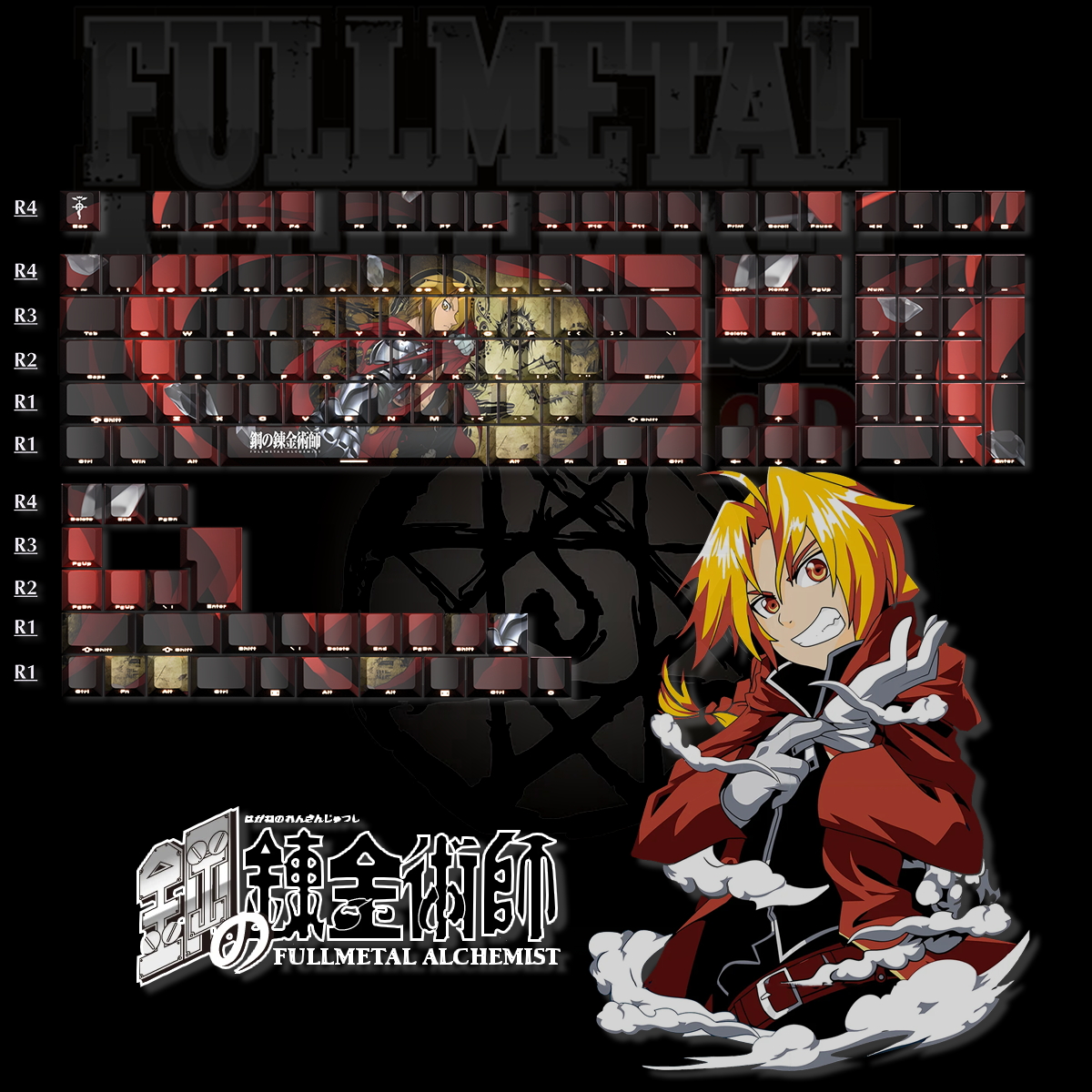 Keycaps PBT Cherry Edward Elric Side Printed 131 Keys Fullmetal Alchemist